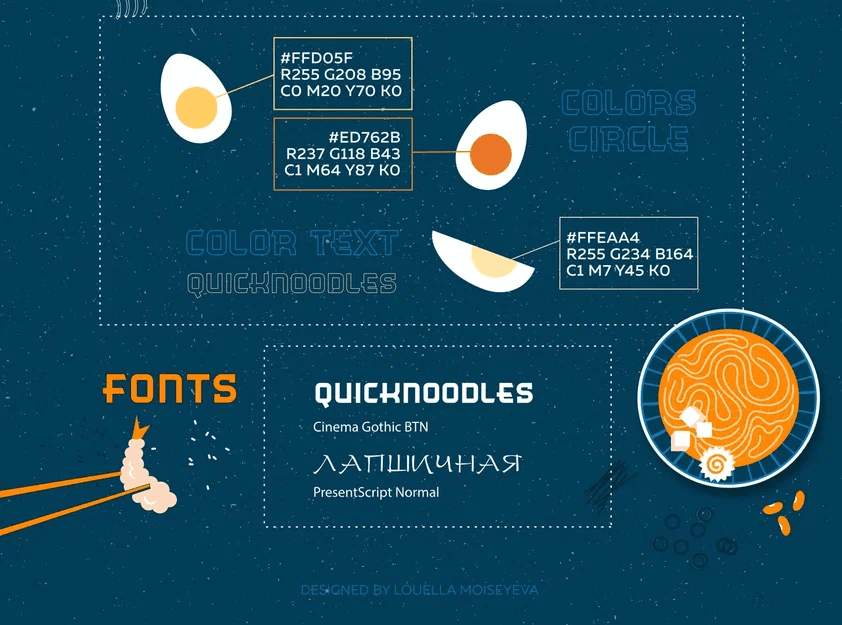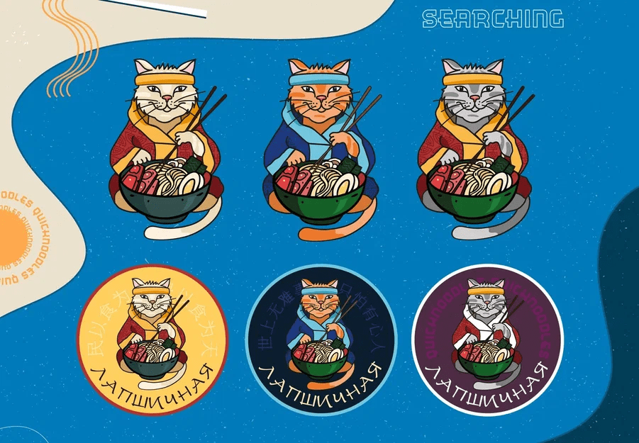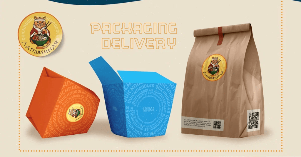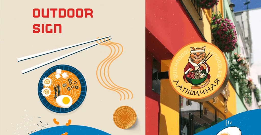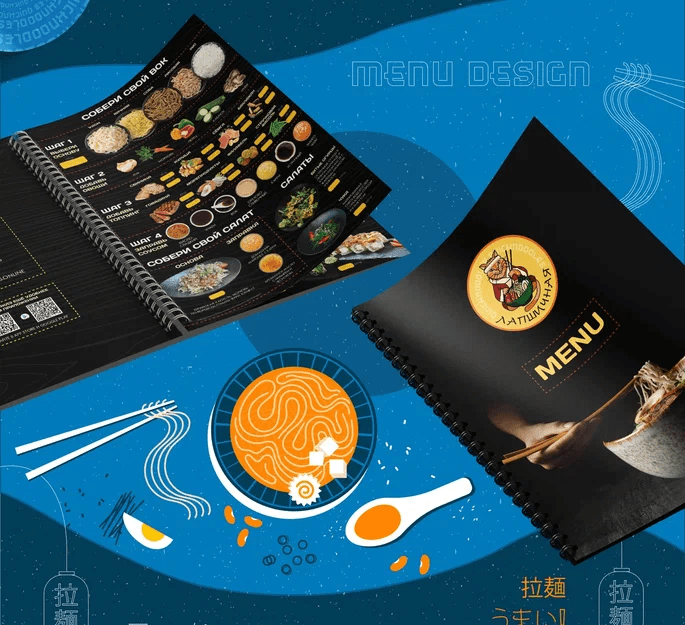 После разработки логотипа для Лапшичной в Севастополе, мы разработали фирменный стиль и брендбук: