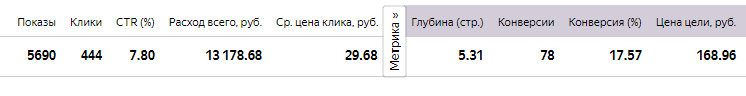Мы, для начала, сделали рекламную компанию на поиске, получили данные результаты: