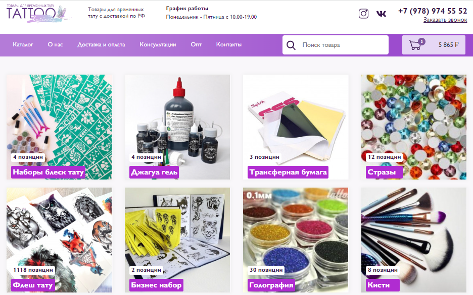 Разработали интернет магазин для «Tattoo Business». Сайт разработан на CMS OpenCart, дизайн «под ключ».