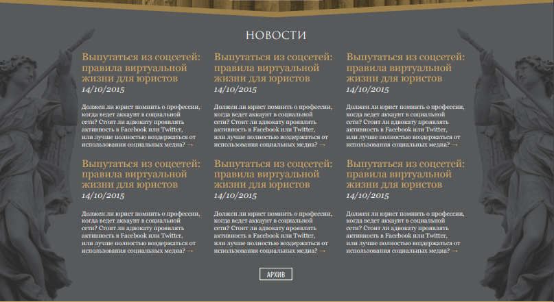 На данный момент, к сожалению, сайта уже не существует и он утерян. Два новых проекта были разработаны: новый сайт для юридического агентства и для преподавательства по обществознанию.