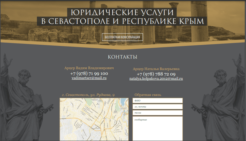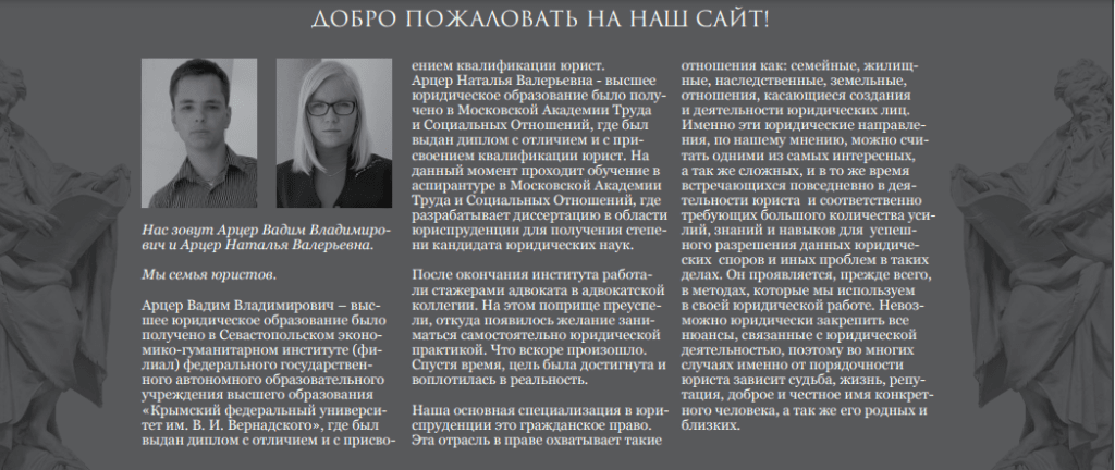 Проекту уже практически 5 лет. Как время летит. К нам пришел по рекомендации юрист Вадим Арцер и заказал у нас разработку логотипа, а затем и сайта. На данный момент работаем со всей семьей Арцер с большим удовольствием!