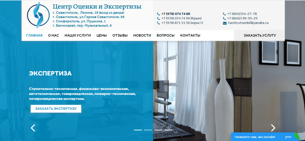 Сайт адаптивен к мобильным устройствам, планшетам и экранам большого разрешения. Отлично подходит для сео оптимизации. Сделан на нашей авторской админ. панели. Ссылка на ресурс → ocenka-krim.ru