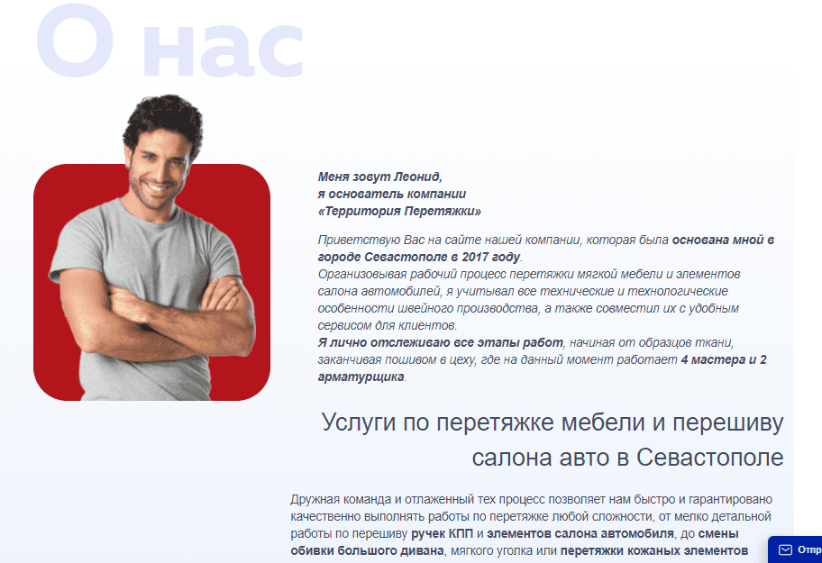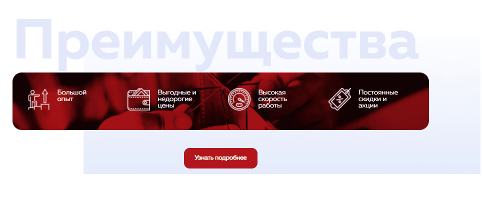Наша команда долго работала, в частности, над главным блоком сайта, несколько раз его переделывали и дорабатывали так, чтобы он точно понравился нашему клиенту. Поработали над некоторыми интересными дизайнерскими решениями.