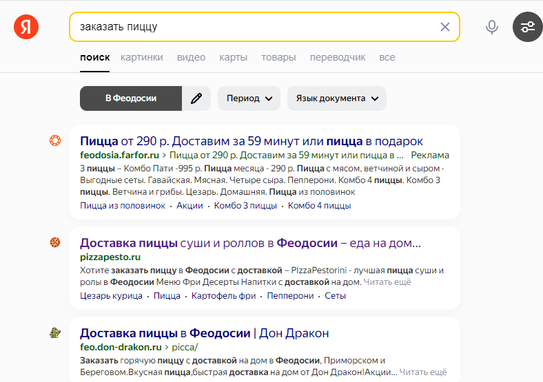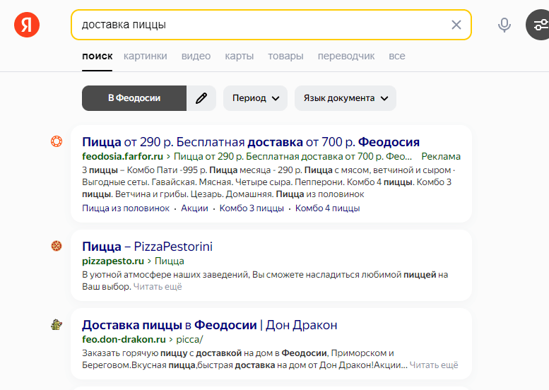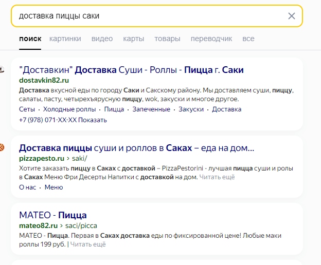 В целом, за счет грамотной работы наших профессиональных специалистов, работа дает очень крутые результаты! Seo оптимизация сайта в направлении доставки пиццы и суши — достаточно сложная работа, тем более в маленьких городах. Все из-за того, что основные позиции забирают федеральные, сетевые доставки с огромными, дорогими, качественными сайтами, с большим количеством ссылочной массы. Именно поэтому продвижение доставки пиццы всегда идет бок о бок только с грамотной работой профессионального сеошника.