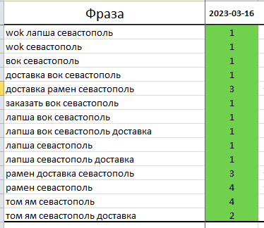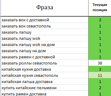 Затем мы получили позиции по большому ряду запросов:
