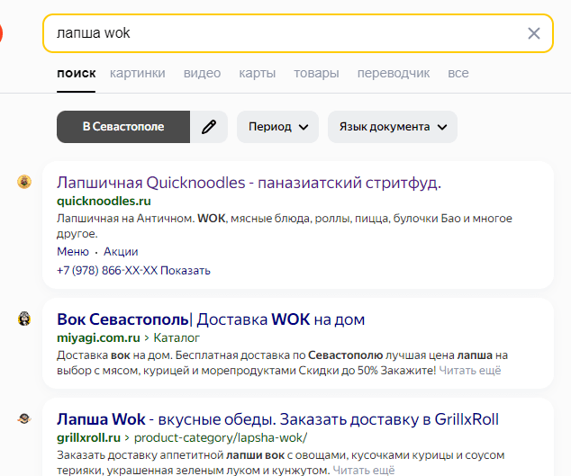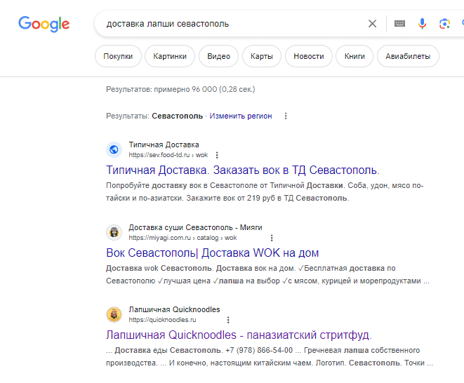 К нам обратились по рекомендации для продвижения Лапшичной в Севастополе! Когда мы стартовали с проектом — он не имел позиций вообще в поисковых машинах. сайт был сделан на WordPress.После 4х месяцев продвижения мы получили первые ТОПовые позиции и пошли заказы: