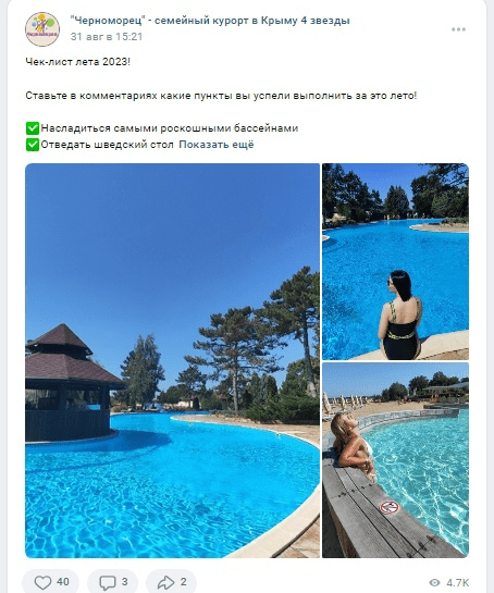 Необходимо было в срочном порядке взяться за ведение социальных сетей пансионата. Предыдущая работа не устаревала нашего заказчика, она в основном состояла из информационных постов, не имела современных форматов.