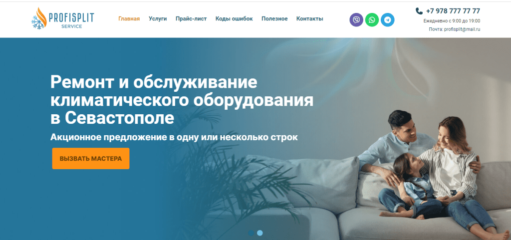 Разработали изначально логотип для фирмы Profisplit на основании шаблона. Приступили к созданию информационного сайта по подобию сайта-донора.