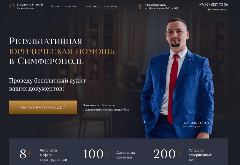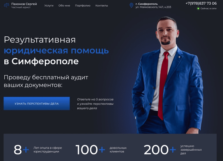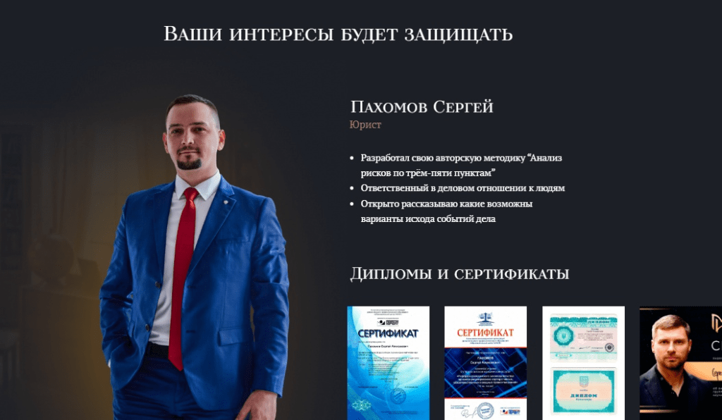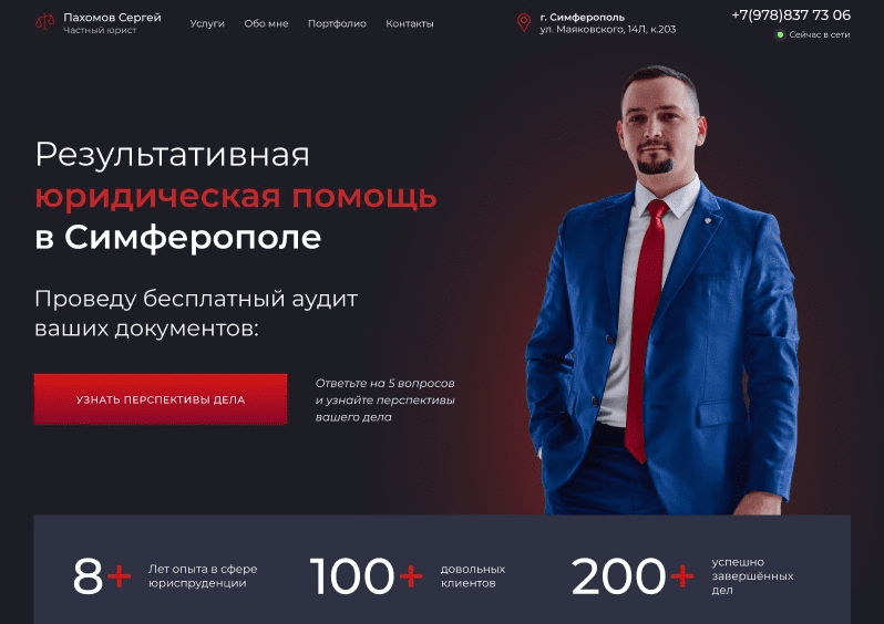 Разработали одностраничный сайт на Tilda в Севастополе для юриста Пахомова Сергея.