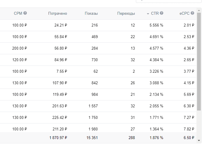 Из 288 человек вступило в группу 65 человек, записалось на бесплатную тренировку 37 человек. Мы проработали 7 целевых аудиторий, в том числе работали с горячей веткой.